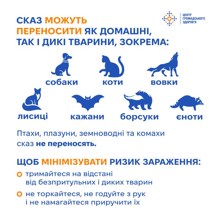 Вакциновані тварини не можуть передавати сказ. Власники домашніх тварин в Україні можуть безоплатно вакцинувати своїх улюбленців від сказу у державних ветеринарних установах, перелік яких можна знайти за цим посиланням: https://tinyurl.com/3wfy6bav