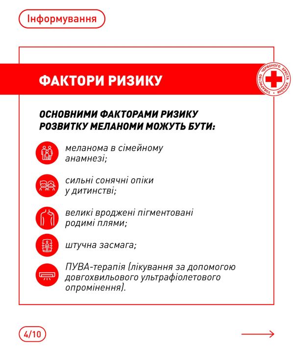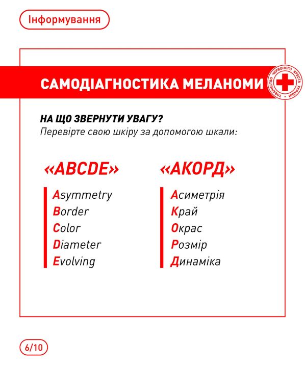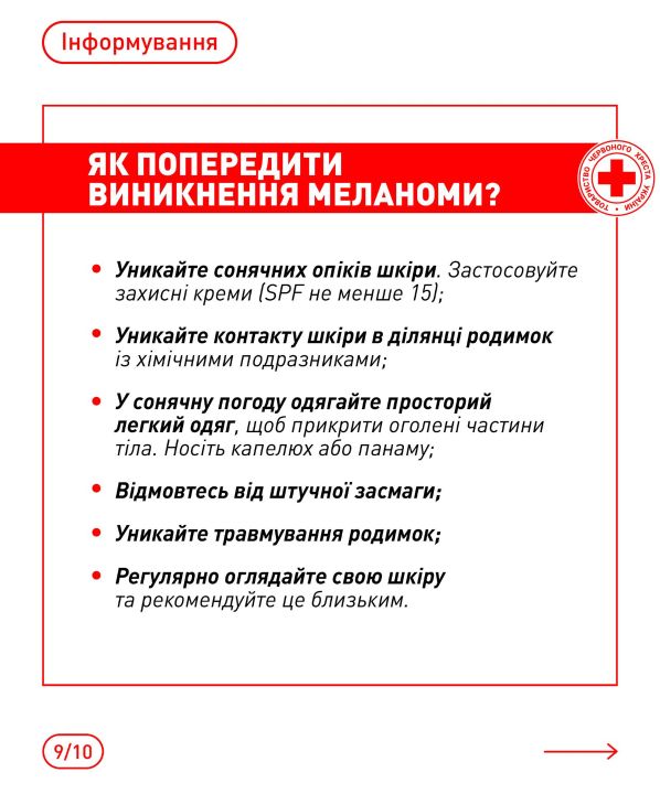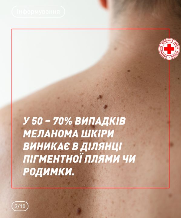 📌 Більше корисної інформації – в інфографіці від Українського Червоного Хреста, створеній на основі матеріалів Центру громадського здоров’я України, World Health Organization Ukraine, Melanoma Research Foundation.