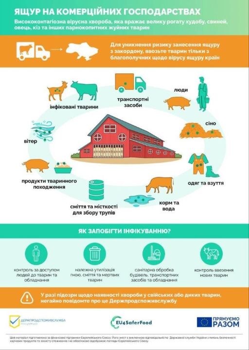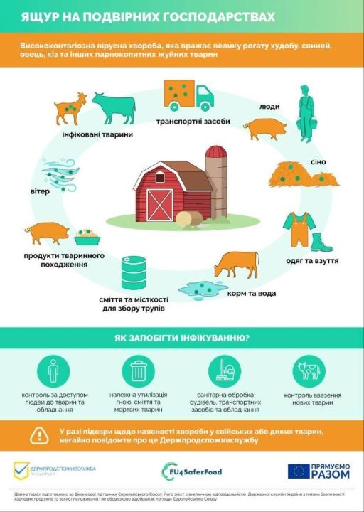 Ящур — це гостре вірусне захворювання, що характеризується високою контагіозністю (заразністю). Хоч основними носіями хвороби є парнокопитні тварини (велика і дрібна рогата худоба, свині), людина також може заразитися.