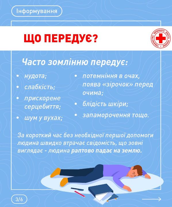 ℹ️ Зомління — ситуація, з якою багато хто міг зіткнутися у житті: чи то колезі погано стало на роботі, чи у магазині вагітна знепритомніла, чи то дитина на фізкультурі раптово зомліла. Що робити і на що звернути увагу під час надання першої допомоги — читайте в інфографіці.