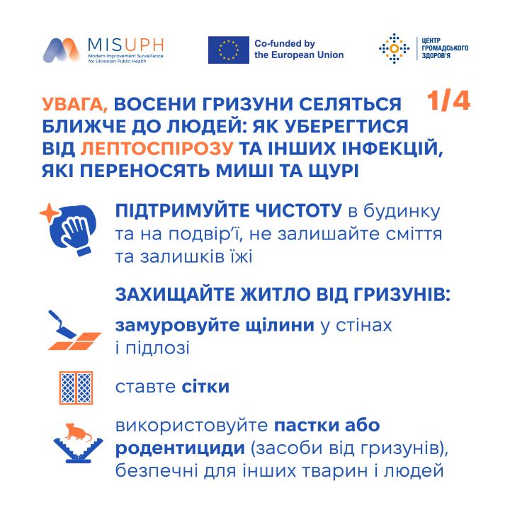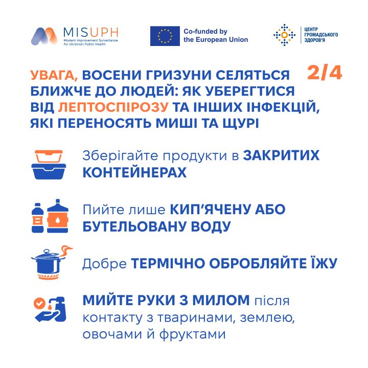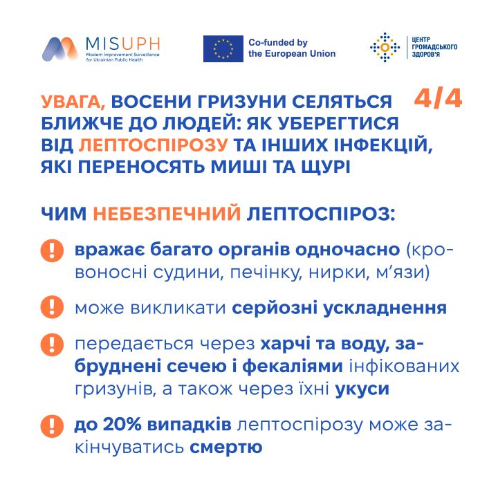 Це створює додатковий ризик поширення особливо небезпечних інфекційних хвороб, які передаються через харчові продукти й воду, забруднені сечею і фекаліями інфікованих гризунів, а також через їхні укуси.