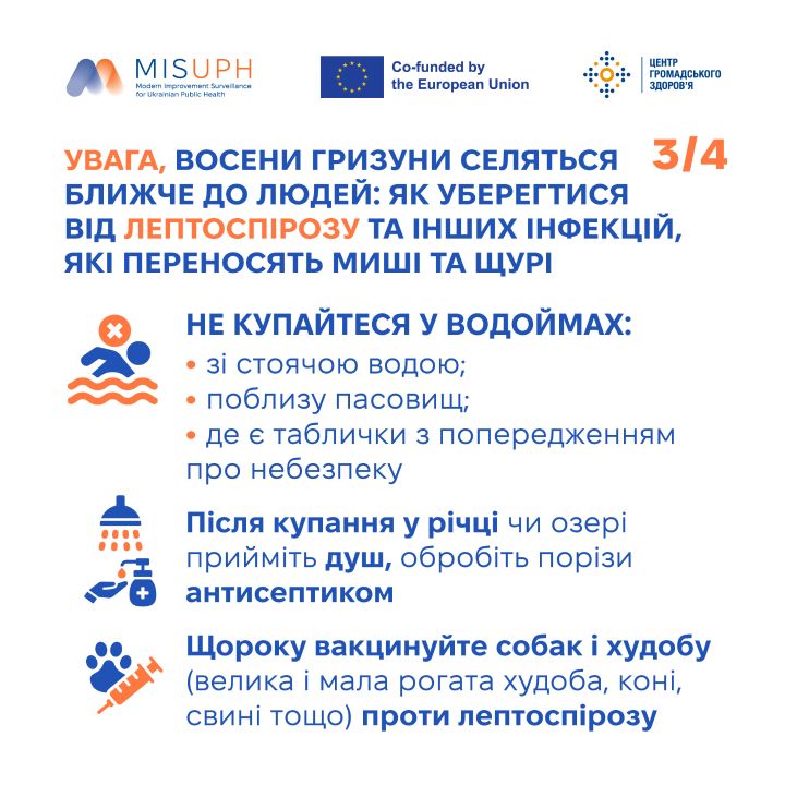 Сезонний пік захворюваності на лептоспіроз припадає на серпень, вересень і жовтень — з настанням похолодання. Чим небезпечний лептоспіроз і як уберегтися від нього — в інфографіці ЦГЗ ⤵️